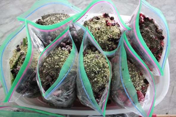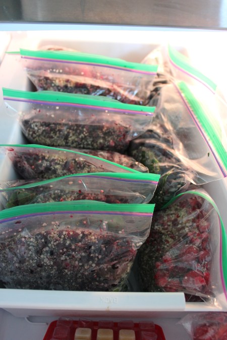If you have fruit that is past it’s prime, it’s great for smoothies. If you don’t have time to make your smoothie packs that day, just pop the fruit in the freezer and then use it to make your smoothie packs when you are ready. I do this all the time with bananas….just break them in half before you freeze them.