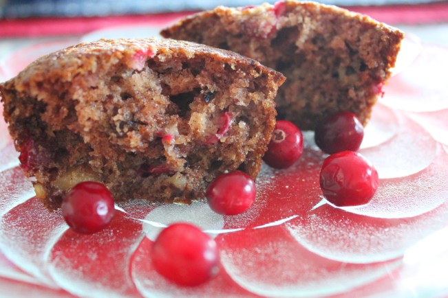 I am looking forward to getting back on track and not having so much food and sweets on the go but with New Year’s in a couple of days, that will have to wait! In the meantime, I did find a bag of leftover cranberries in the fridge so I made these amazingly moist muffins. Somewhat healthy with coconut oil, whole wheat flour and unsweetened applesauce. So yummy and satisfied my craving for something sweet.