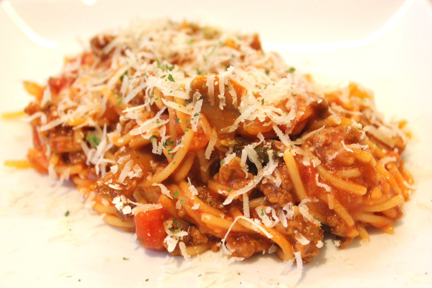 We LOVE pasta in our house, and although it is not carb conscience, I always try and lighten it up with healthier ingredients….like using ground chicken / turkey and lots of vegetables. This pasta is delicious….very saucy with a lot of great tomato flavor, plus mushrooms, peppers and of course, parmesan cheese. Comes together quickly and super simple…a bonus on busy days! Just get the sauce cooking and bubbling, add the spaghetti and you have supper on the table in no time. Great with garlic bread and a nice green salad.