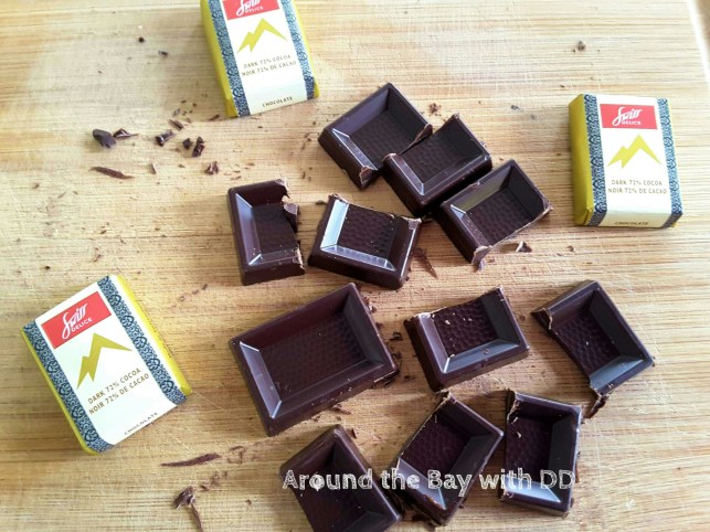 1/4 cup of dark chocolate chips or 12 pieces of dark chocolate bar