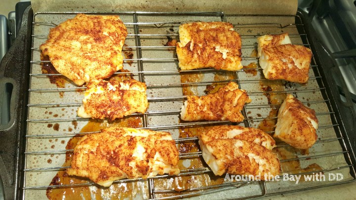 In a small bowl, mix the olive oil and chili powder. Pat fish dry and with a pastry brush, lightly brush both sides of the fish with the oil mixture. Lay seasoned cod on cooling racks. Season lightly with salt and pepper (optional)