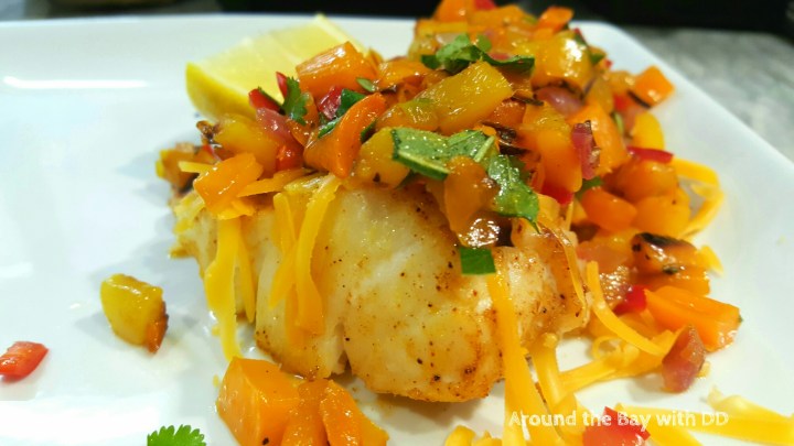 The SALSA! The SALSA! The SALSA! is soooo goooood! It is so fresh, super flavorful with the sweetness from the peppers and the tanginess from the lemon perfectly compliments the BAKED fish. A light recipe without a lot of fat, carbs or calories so feel free to have seconds 🙂 The fish also has a little sprinkle of cheddar cheese and that little bit of creaminess and saltiness is AMAZING ~ do not leave it out! If you are living a low carb lifestyle, just have the fish, cheese, and salsa. It’s delicious either way.
