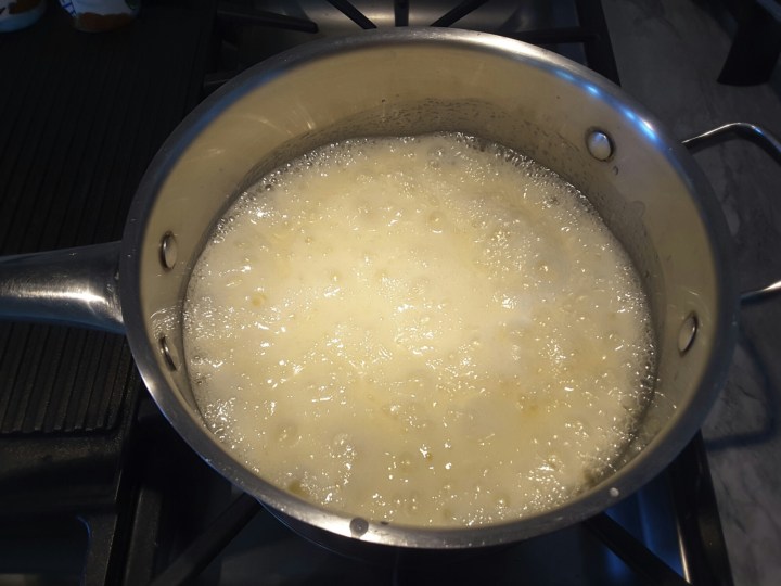 This recipe is a bit finicky! Once it starts boiling, boil gently for 5 minutes. DO NOT STIR! Again, DO NOT STIR! If you do, the batter will go all dry and crumbly and will not be edible. Speaking from experience here! (I threw out my 1st batch as I forgot about the non-stirring part)