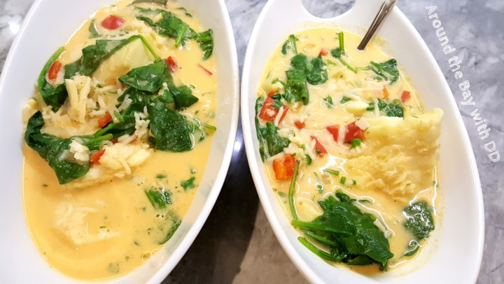 A super simple, “ONE DISH DINNER” that is ready is 20 minutes! Delicious and healthy Thai Fish Soup…coconut milk, fresh cod (or any seafood you like) red peppers, spinach, ginger, curry paste, and Sriracha Sauce. YUM!