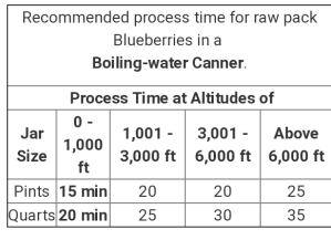 Once all jars are filled and returned to the hot water bath and the water starts to boil again, boil for 15 minutes for pint jars and 20 minutes for quart jars. (SEE CHART BELOW)