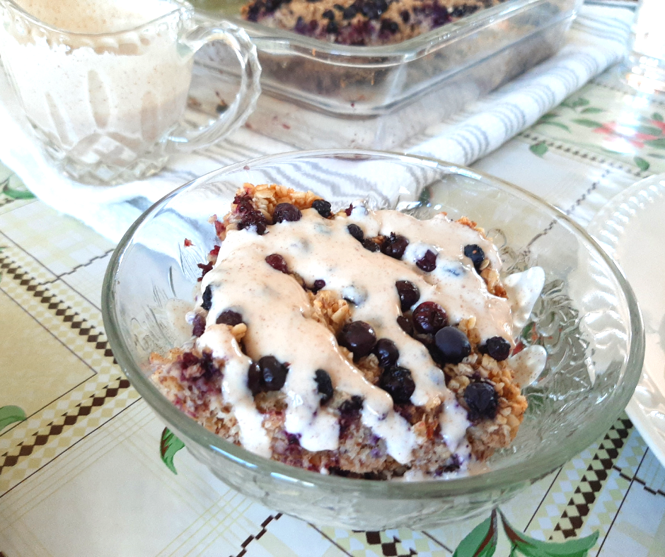 Baked Blueberry Oatmeal with Maple Cinnamon Yogurt Cream